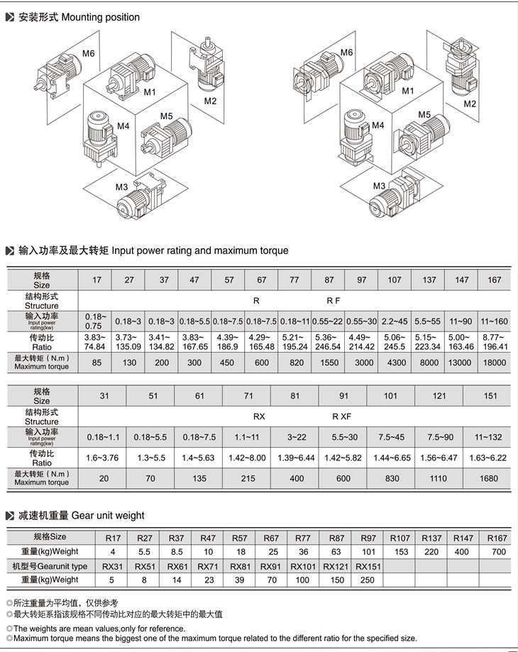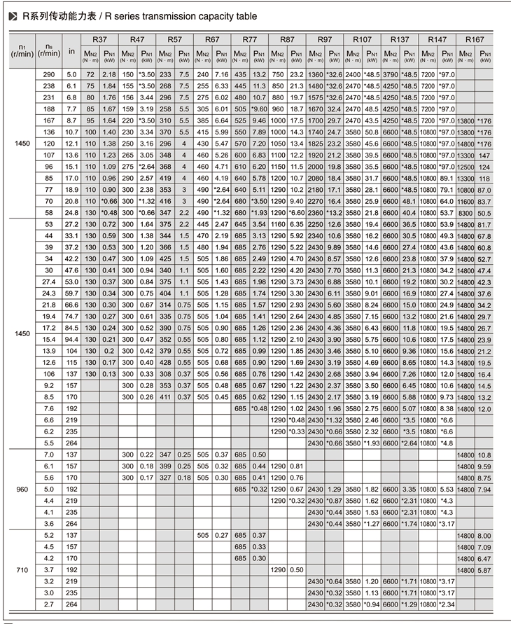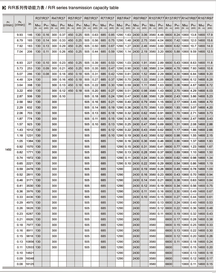 R系列斜齒輪減速機技術參數:
