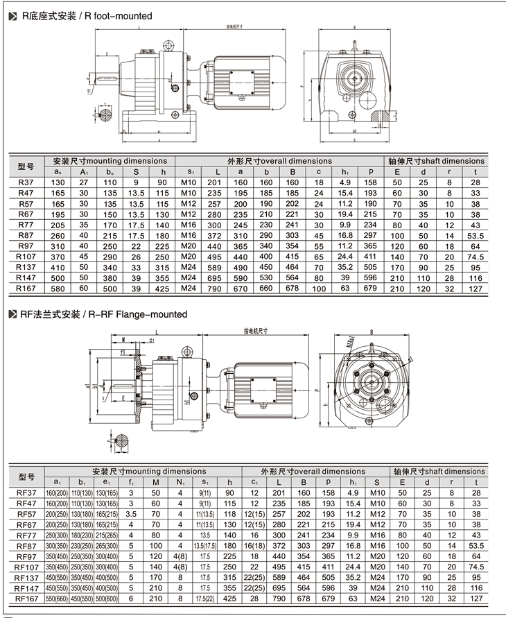 RF:底腳法蘭安裝   RM:法蘭安裝帶加長軸承箱